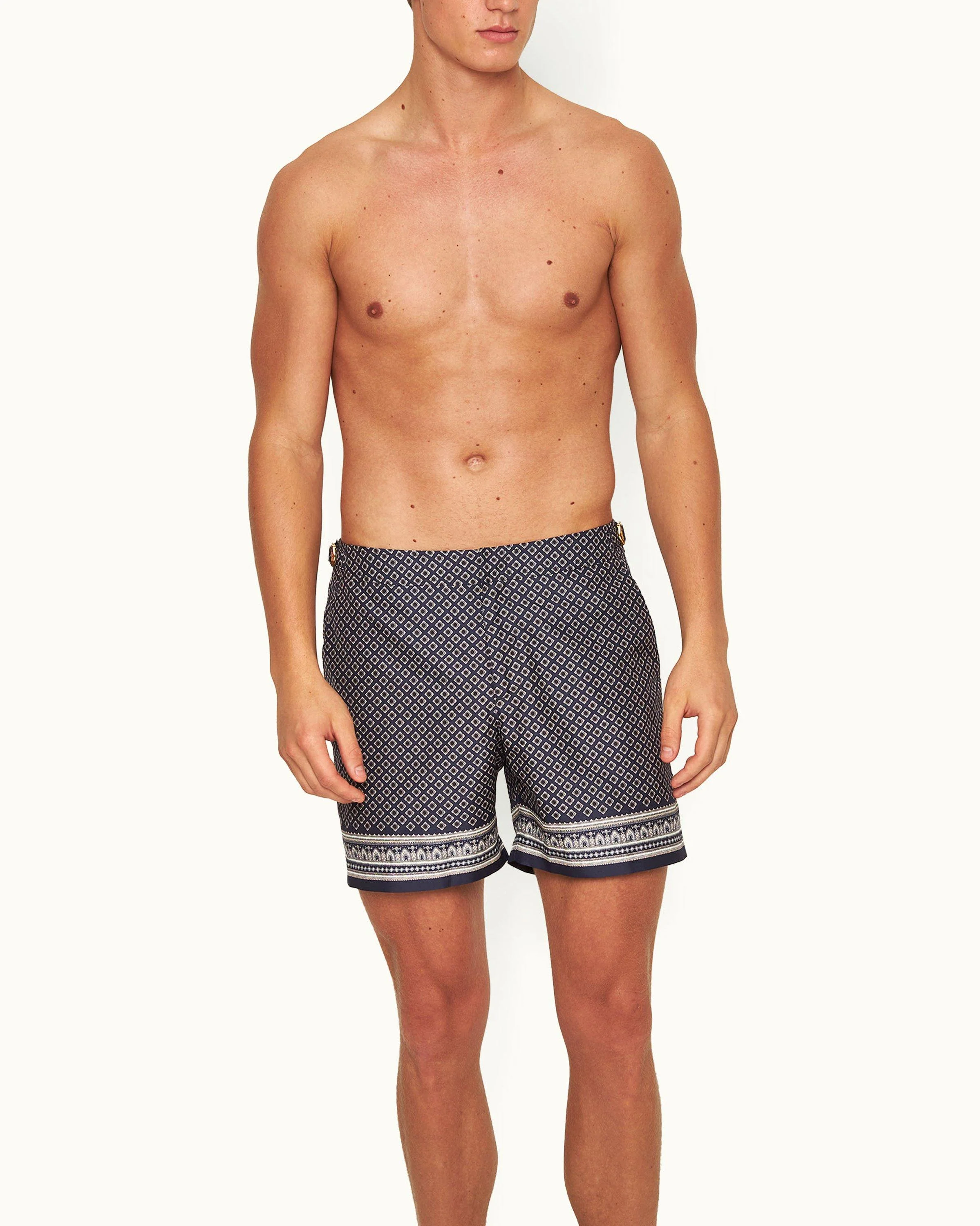 The Bulldog was our first style of swim shorts. It's based on the pattern of traditional tailored trousers and comprises six elements, with signature adjustable side fasteners for the best fit. The mid-length design is suited to all shapes and sizes. The Bulldog isn't just a swim shortāit's a short you can swim in.