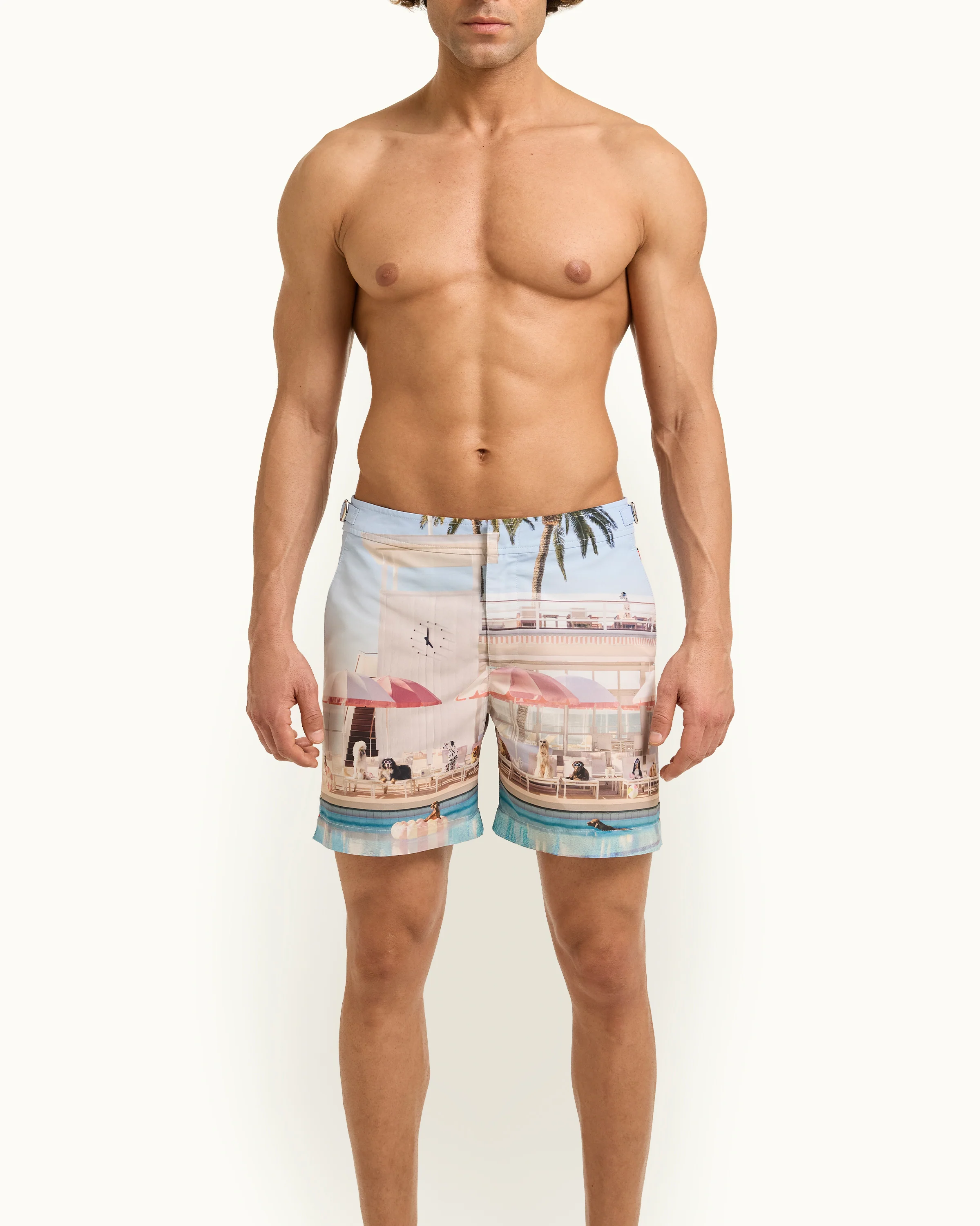 Orlebar Brown introduces our second collaboration with photographer Gray Malin. Taking this iconic image of Coral Casino in Santa Barbara, California, adapted to fit the many tailored elements of an Orlebar Brown Bulldog swim short.