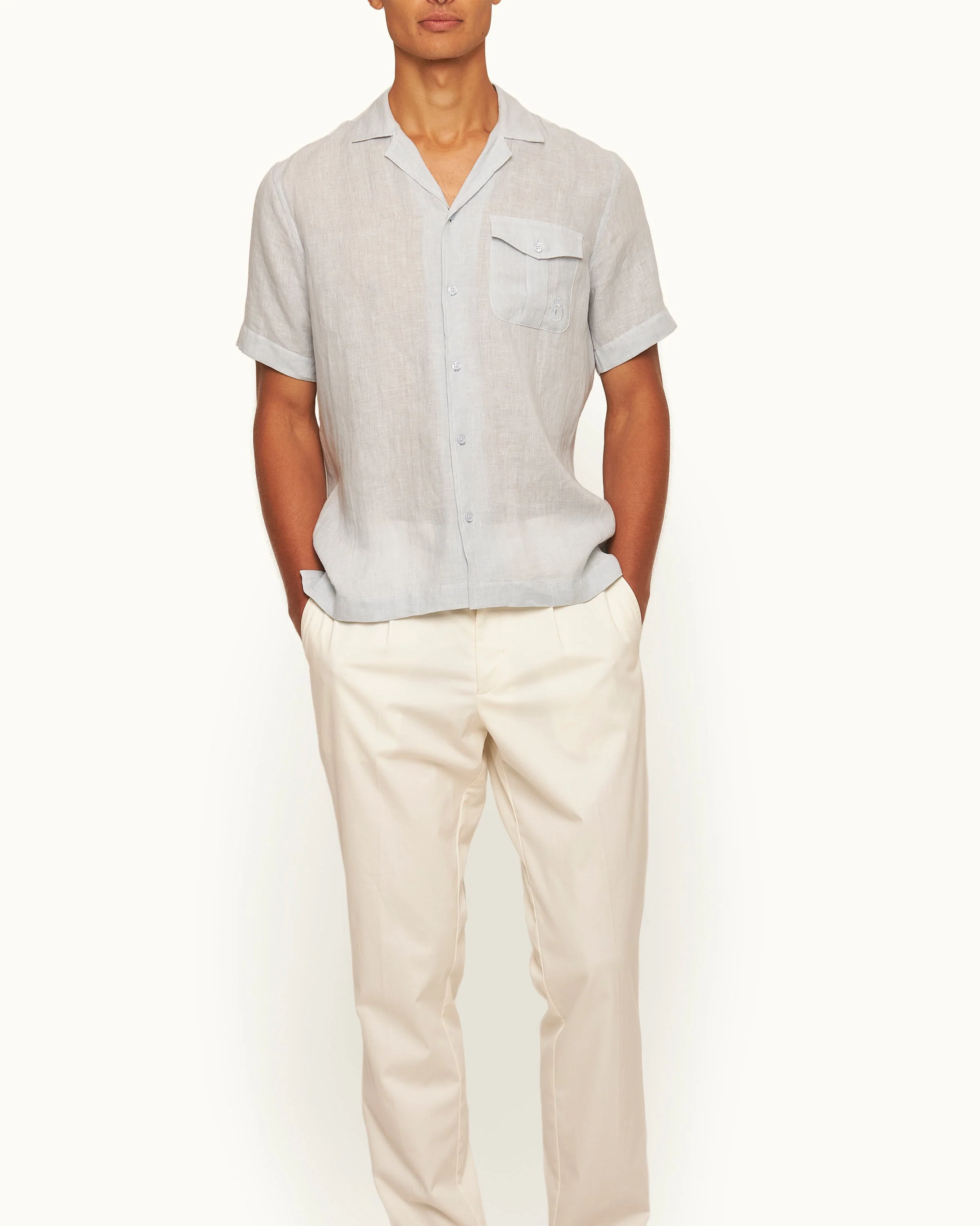 Our interpretation has a pared-back Capri collar, relaxed shape, and super-light Italian linen fabric. We've embroidered an 'S' for Scaramanga emblem on the button-down chest pocket in a nod to one of the most iconic villains in the 007 film franchise.